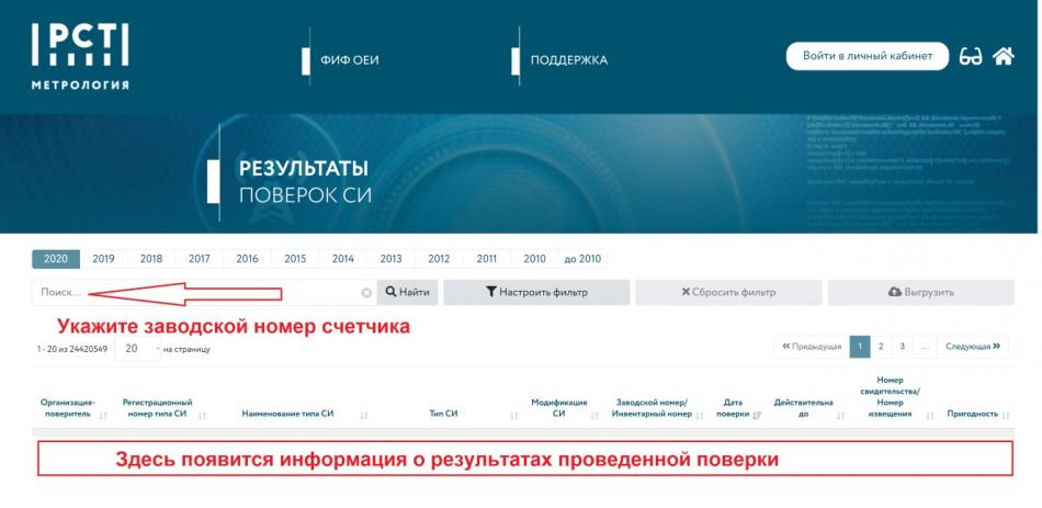 - 4) Проверить данные о поверке – убедиться в наличии данных о результатах поверки вашего прибора учета.
